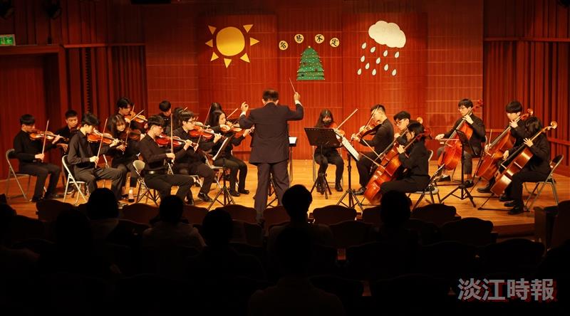 【記者曾晨維淡水校園報導】弦樂社12月17日晚上7時,在文錙音樂廳舉辦第39屆期末音樂會「音琴不定」,由指揮張正木帶領社員們演奏近20首曲目,包括廣為人知的動畫《進擊的巨人》主題曲〈獻出心臟〉、《魔女宅急便》插曲〈海の見える街〉,〈卡門〉、〈You raise me up〉及電影主題曲〈美女與野獸〉等,演奏曲風豐富多元,讓近40名觀眾沉浸於一場扣人心弦的音樂饗宴中。
